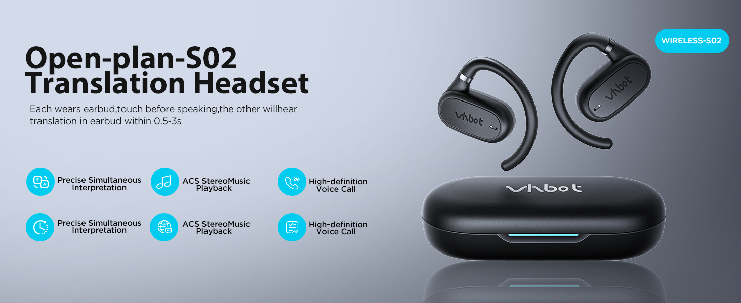 AI smart translation earphone S-02 Ear hanging type headphones are both headphones and translators.